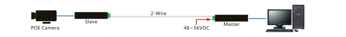2 - Chuyển đổi và truyền tín hiệu mạng PoE khoảng cách xa. cần sử dụng bộ đổi nguồn 48VDC~56VDC cho bộ mã hóa và truyền tín hiệu. không cần thêm nguồn cho bộ giải mã và nhận tín hiệu và không cần thêm nguồn cho camera IP.