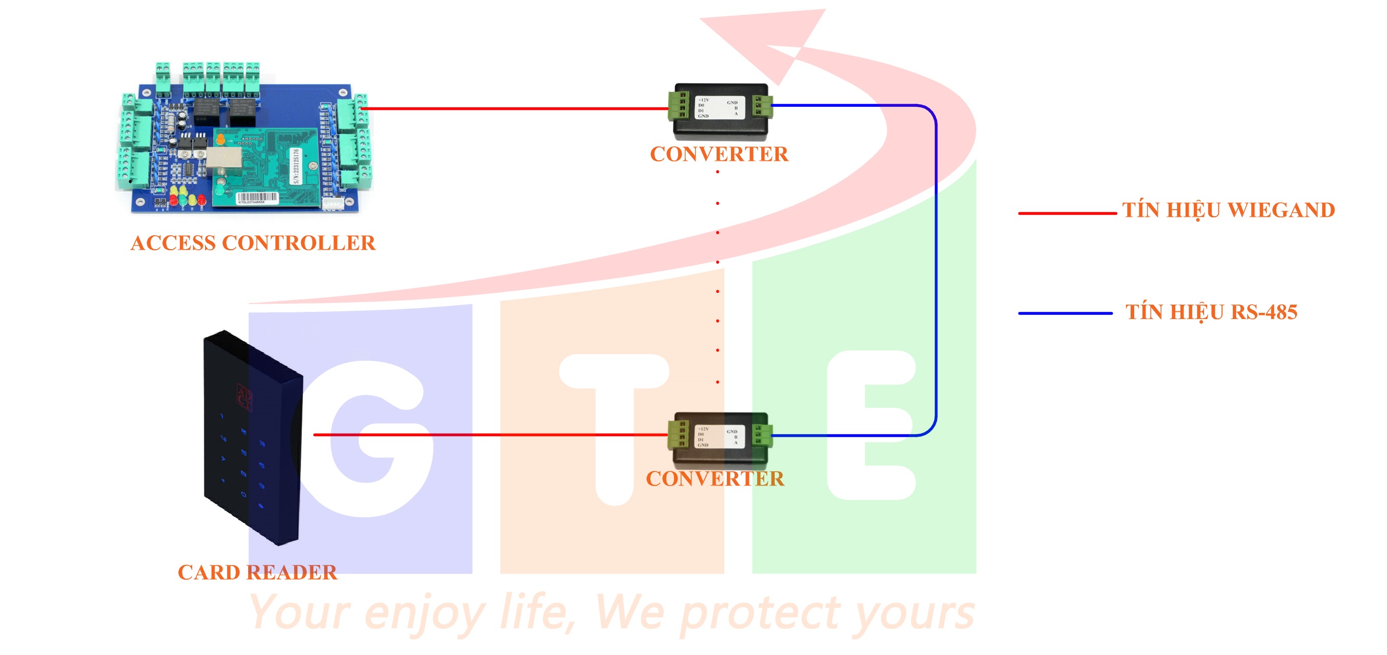 Bộ chuyển đổi tín hiệu chuẩn wiegand sang chuẩn RS-485 được thiết kế để truyền tín hiệu wiegand đi xa khi cần tín hiệu wiegand nhưng tín hiệu đó ở xa trung tâm kiểm soát. Đây là một thiết bị chuyển đổi 2 chiều được ứng dụng trong hệ thống kiểm soát truy cập ( access control ) và hệ thống quản lý bãi giữ xe thông minh ( packing system ). Bộ chuyển đổi tín hiệu wiegand sang chuẩn RS-485 có thể truyền tín hiệu Wiegand 26 bits hoặc Wiegand 34bits sang tín hiệu RS-485 và ngược lại cũng có thể truyền từ tín hiệu RS-485 sang tín hiệu Wiegand. Giao thức truyền thông 9600, N, 8, 1