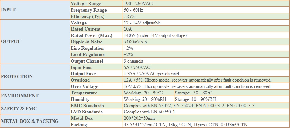 BỘ NGUỒN DÙNG CHO HỆ THỐNG CAMERA MSP-1210-09CH