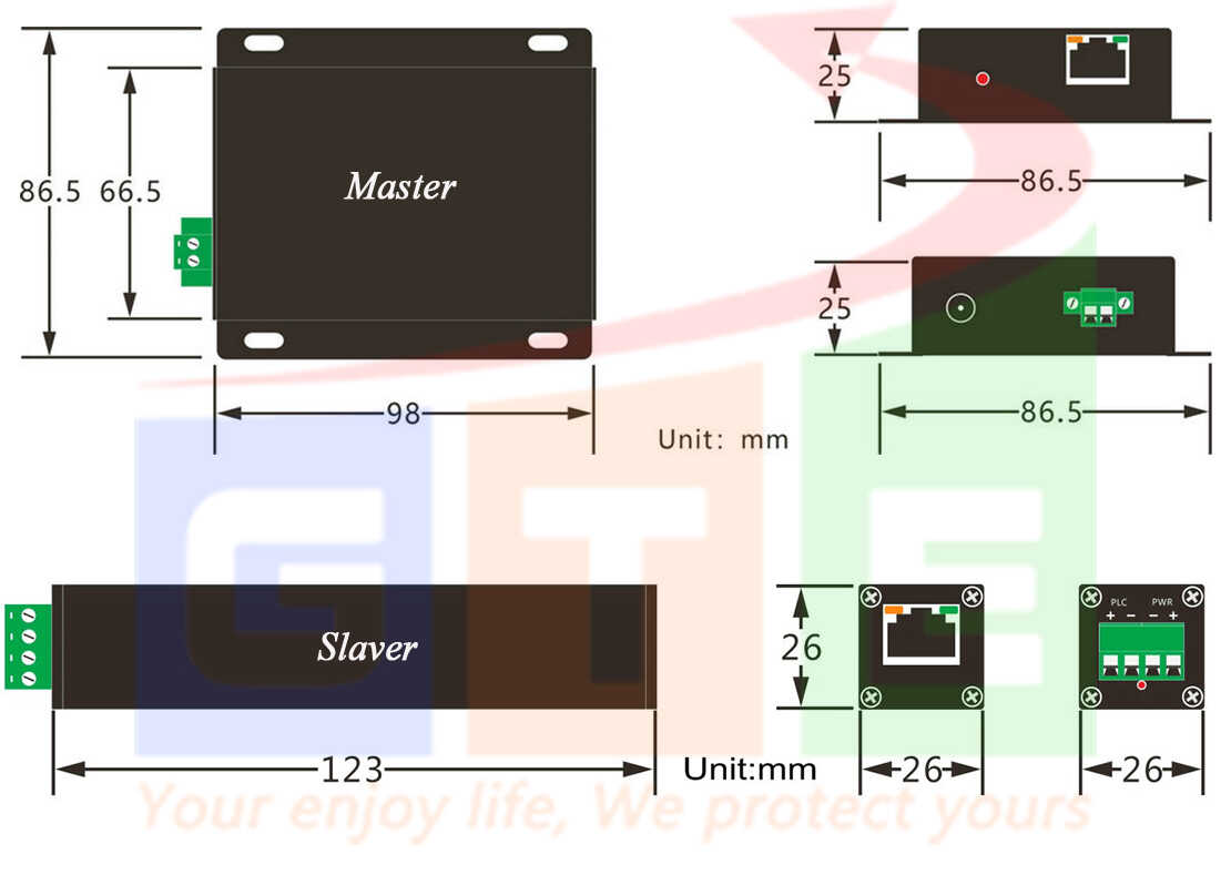 | Slaver: RJ45/PoE Output Standard 48VDC; IEEE802.3af/at, Tiêu thụ năng lượng ≤ 1,5W /cái | |||