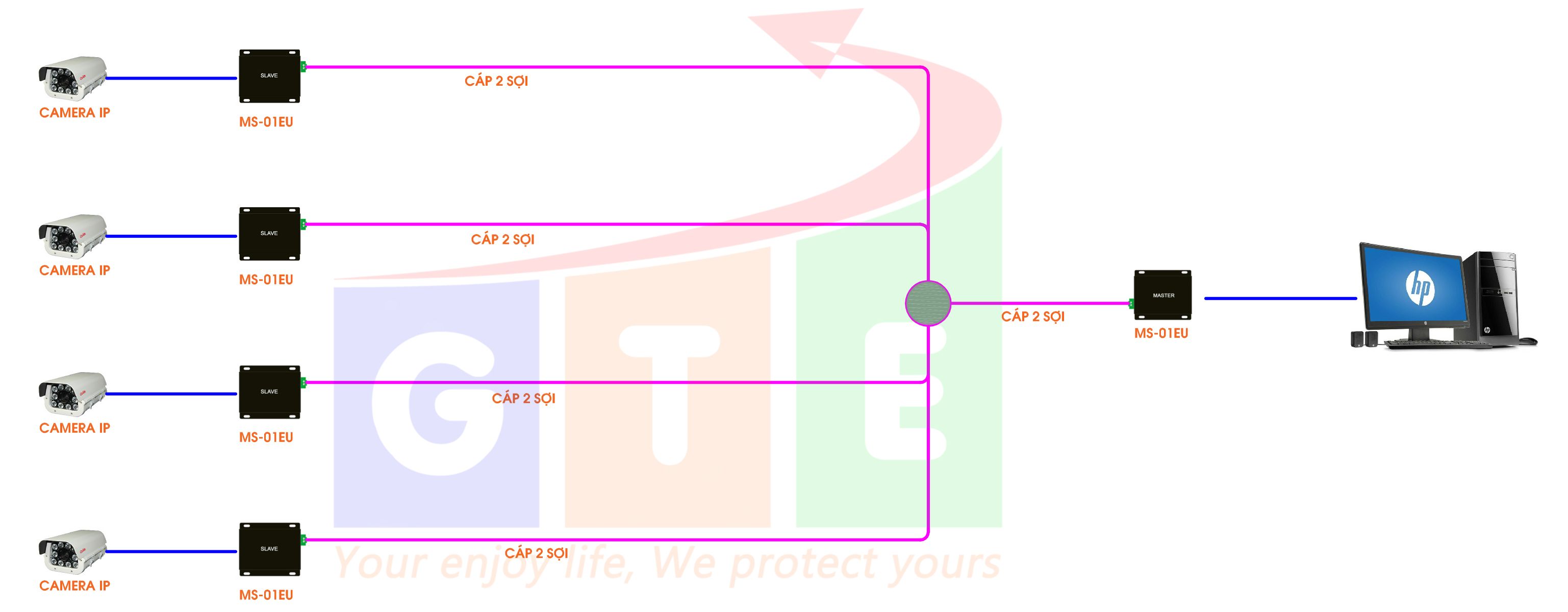 - Ứng dụng trong hệ thống camera giám sát. Sử dụng để kết nối các camera IP ở vị trí quá xa trung tâm ( đầu ghi hình IP , hoặc Switch mạng ) hoặc hệ thống kiểm soát thang máy dùng để kết nối với thiết bị nhận dạng ( đầu đọc vân tay, đầu đọc thẻ lắp trong cabin thang máy và trung tâm kiểm soát cửa trong thang máy