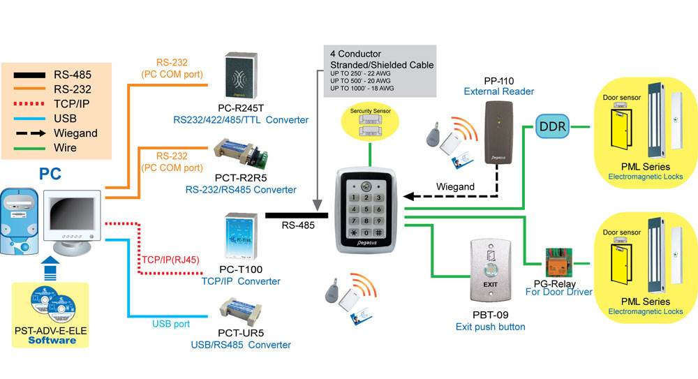 PZ-85X/NR5: Dùng thẻ RFID 125KHz EM Đầu đọc thẻ tích hợp trung tâm kiểm soát cửa, Chuẩn kết nối RS485, Quản lý 32000 cards người dùng, lưu trữ 32000 sự kiện khi Offline