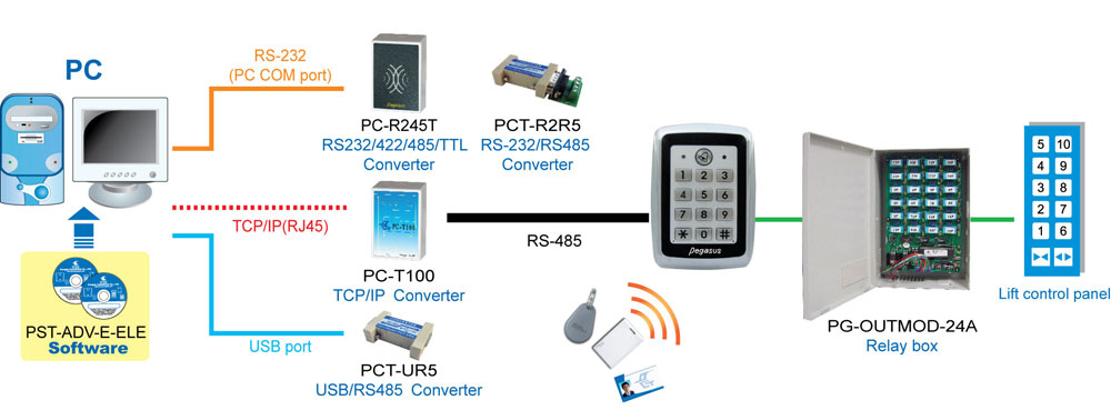 3. To drive 8/24/48/64 relay output modules for lifts access control |