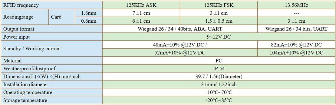 Đầu đọc thẻ PP-30HW34: 125KHz FSK Proximity reader, Wiegand 34 bits