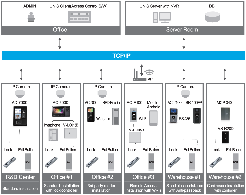 - Hỗ trợ kết nối Wiegand 26/34 Output kết nối với hệ thống access control khác