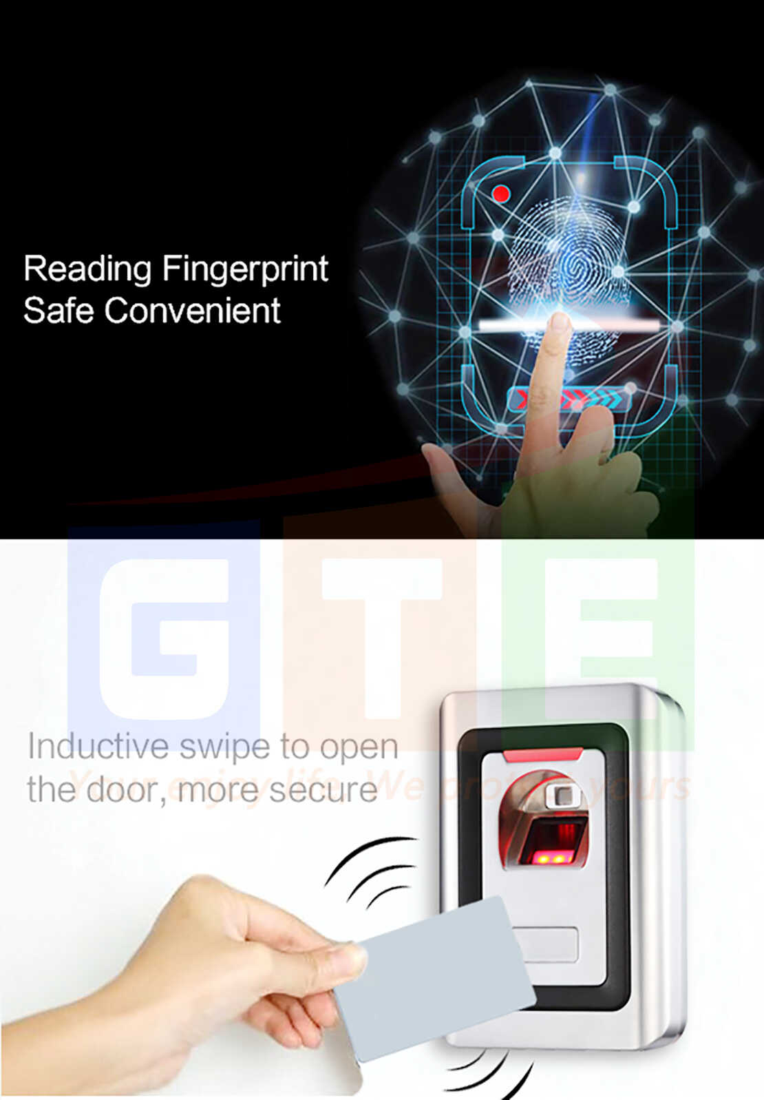 | Phương thức nhận dạng kiểm soát truy cập dùng vân tay hoặc thẻ , có thể cài đặt độ bảo mật cao như chế độ Multi access control, Vân tay + thẻ ...... |