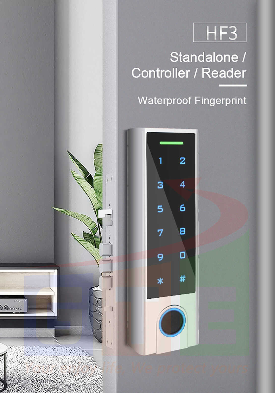 HF3-BT là bộ điều khiển truy cập vân tay hoạt động độc lập với tiêu chuẩn chống thấm nước IP66 với bàn phím cảm ứng và vỏ kim loại.