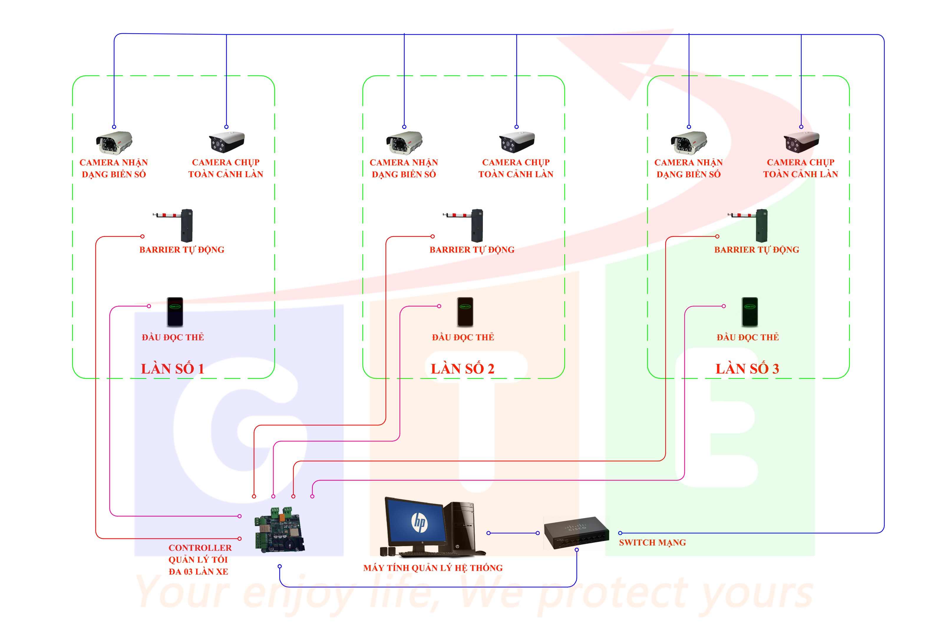 Cấu hình hệ thống bãi xe tùy theo mặt bằng cụ thể và yêu cầu của khách hàng cũng như lưu lượng phương tiện cần quản lý. Chúng tôi sẽ thiết kế hệ thống theo phương án tối ưu nhất cho khách hàng đảm bảo tất cả các tiêu chí: Tiết kiệm- An toàn - Thẩm mỹ cao, và đặc biệt là hệ thống phải hoạt động ổn định trong quá trình vận hành.