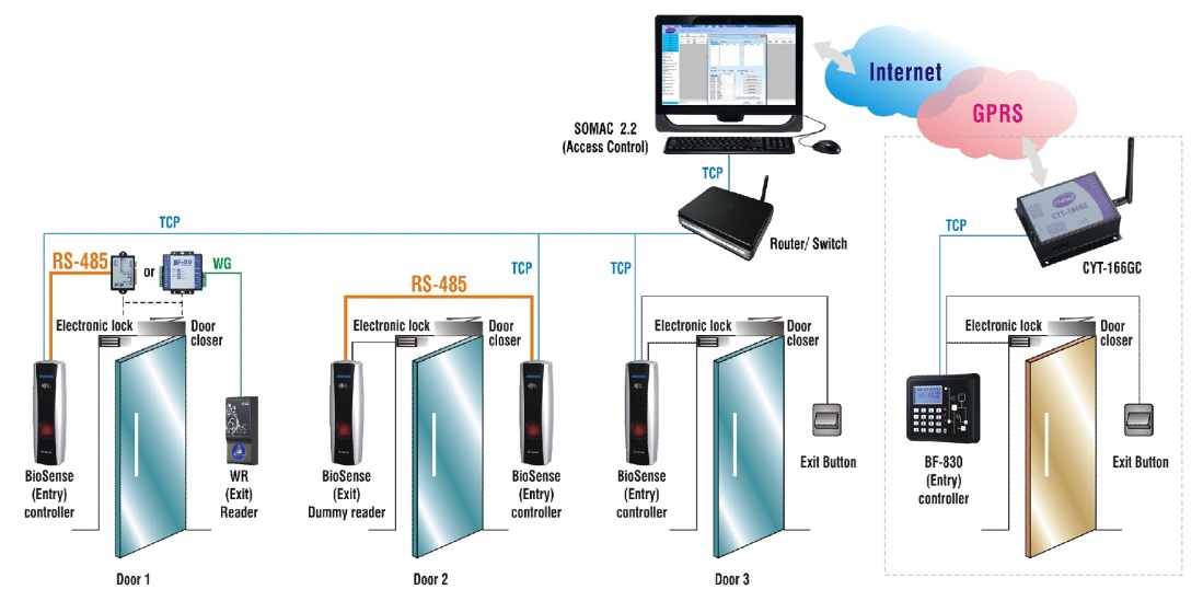 Hệ thống kiểm soát cửa ra vào cơ bản bao gồm: