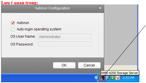 - Phải để chế độ Autorun cho chương trình iVMS-4200 storage server
