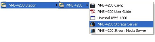 Vào Start --> Program --> iVMS-4200 --> chọn iVMS-4200 Storage Server -