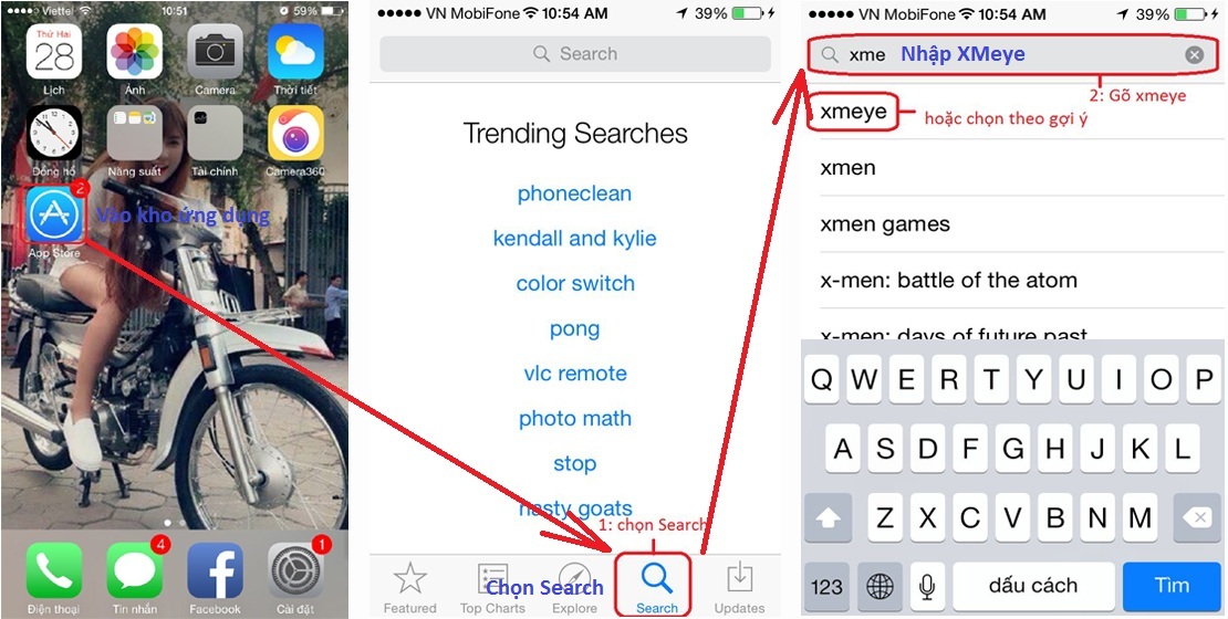 Trên màn hình chính của điện thoại các bạn tìm đến kho ứng dụng Appstore (ios) hoặc CHplay (android). Ứng dụng mình đã khoanh tròn đỏ, để tải ứng dụng Xmeye về điện thoại hoặc Tablet của mình