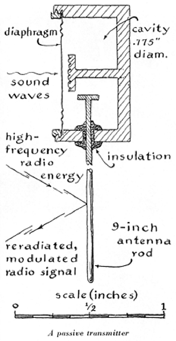 Bên trong nó được gắn một Micro thu âm thụ động , hoạt động mà không cần nguồn nuôi, nó chỉ làm việc khi chiếu xạ bằng sóng âm thanh của những tần số nhất định của một chiếc xe tải đỗ gần đại sứ quán.