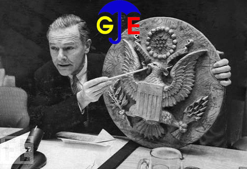 Năm 1945, một nhóm học sinh Liên Xô đã tặng cho Đại Sứ Hoa Kỳ tại Liên Xô một bản trạm khắc gỗ lớn có hình chú đại bàng biểu tượng của nước Mỹ.