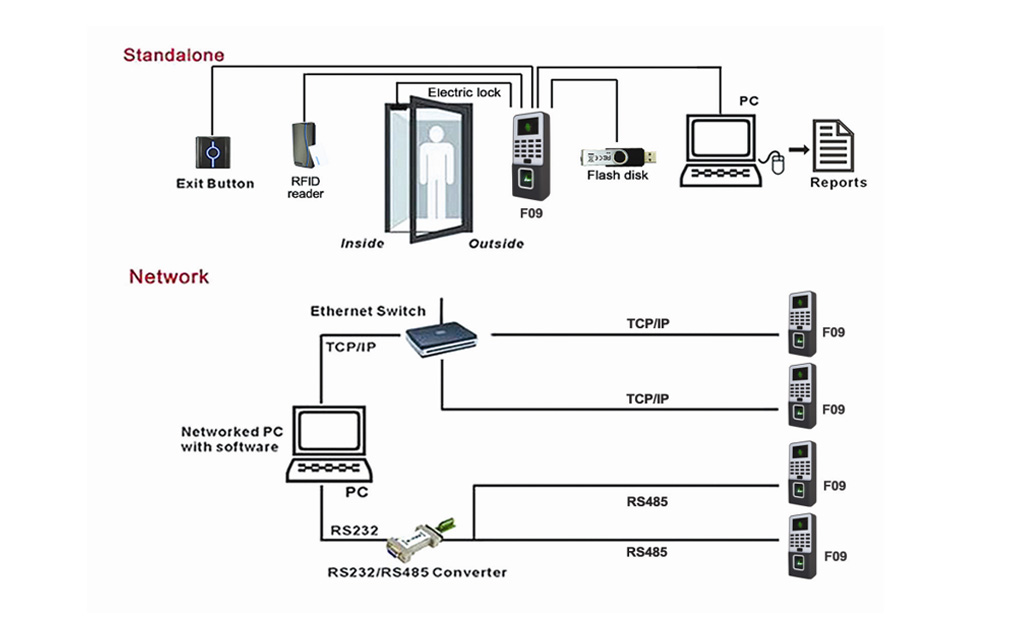 Sơ đồ kết nối hệ thống máy chấm công kiểm soát cửa F19