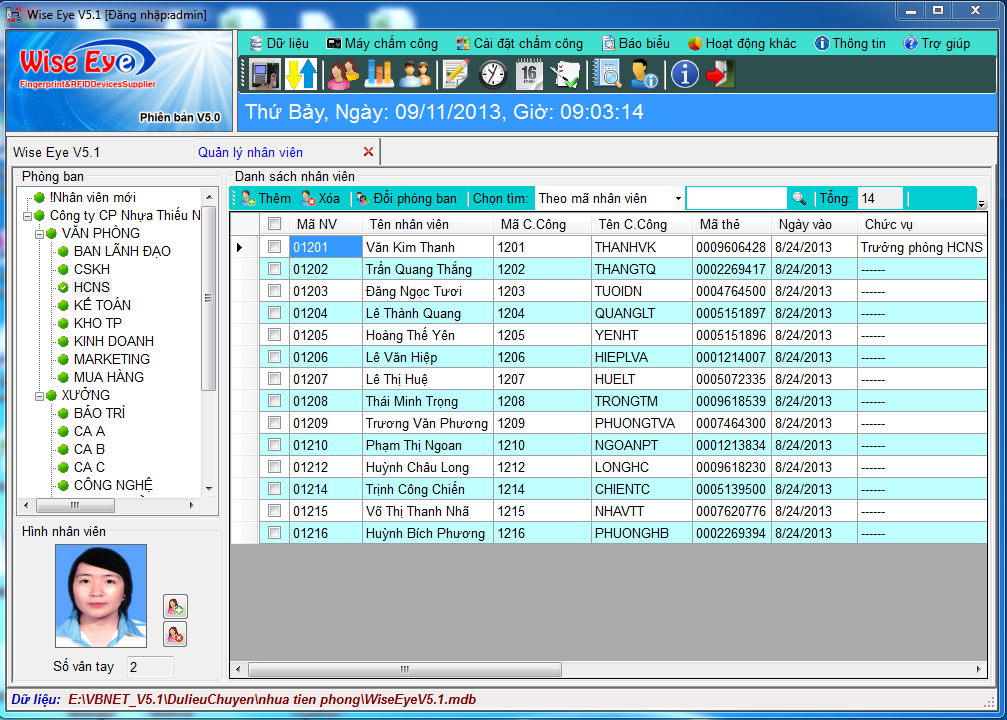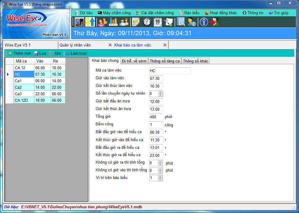 Phần mềm chấm công tiếng Việt Wise Eye V5.1