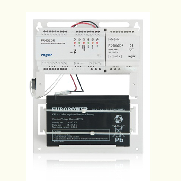 • Bộ điều khiển PR-402DT-SET bao gồm bộ điều khiển PR-402DR và biến áp PS-10ACDR (18VA) lắp đặt sẵn trong vỏ tủ, có chỗ để lắp ắc quy dự phòng. Vỏ tủ làm bằng kim loại, sơn tĩnh điện, có tiếp điểm Tamper chống phá hoại và có cửa sổ đèn LED chỉ thị trạng thái